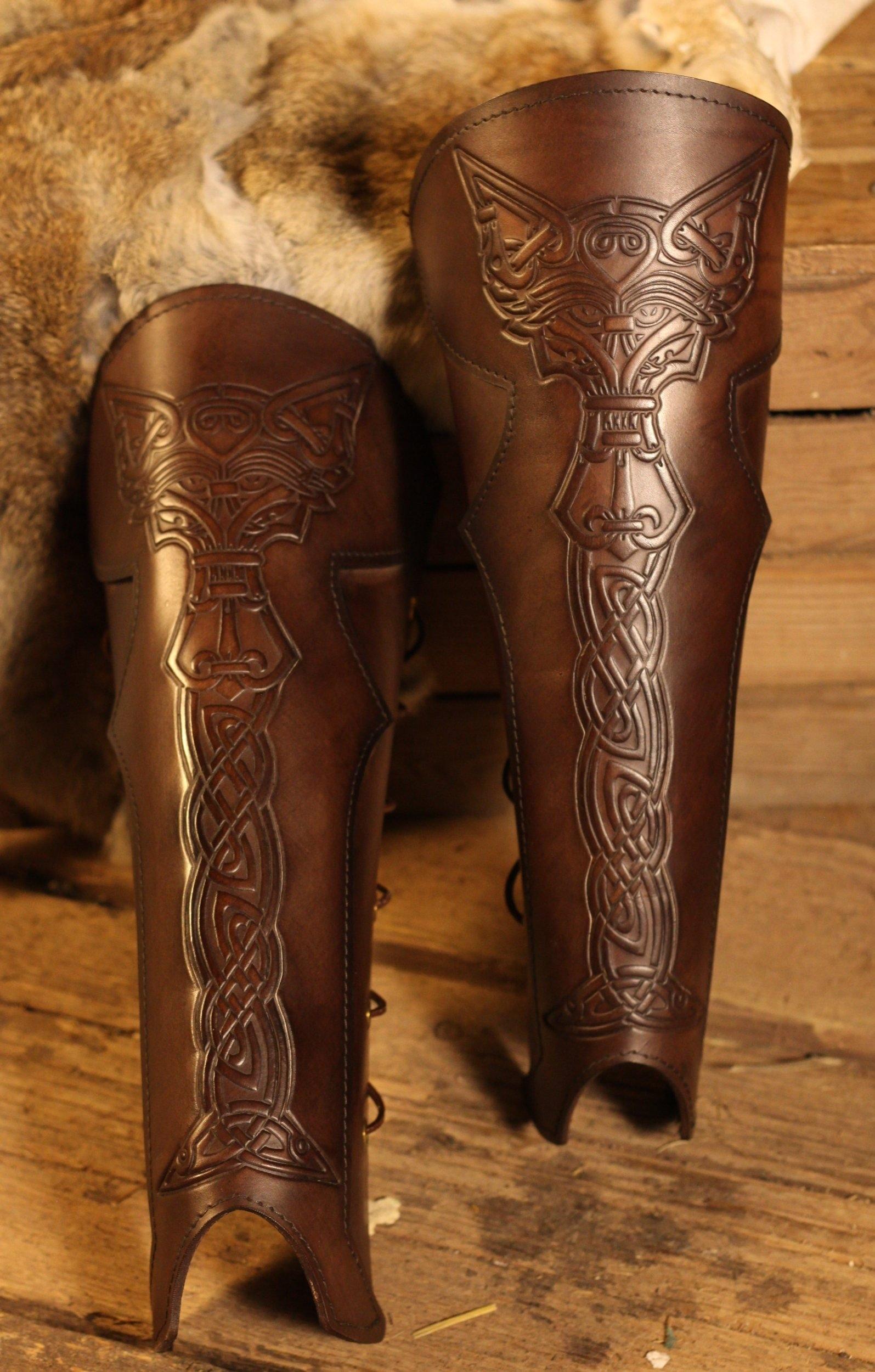 BLACK RAVEN ARMOURY LARP Beinschienen Vendel - Größe: L/XL - Farbe: saddle tan