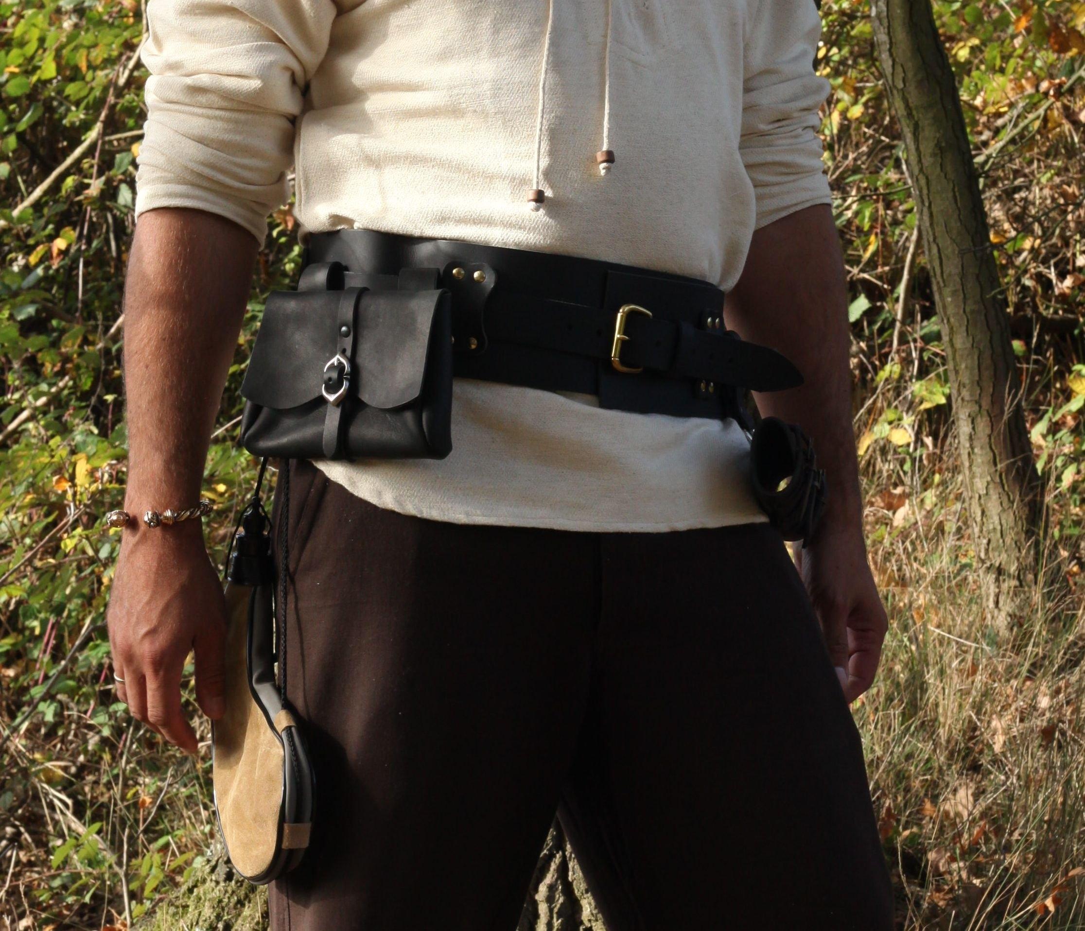 LYON LEATHERS Breiter LARP Heldengürtel aus Leder - Größe: S/M - Farbe: schwarz