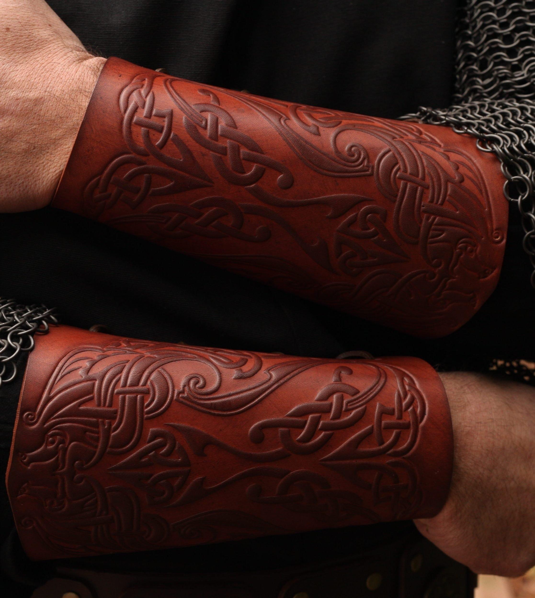 STICKMASCHINE Leder-Armschienen Drachenprägung - Farbe: saddle tan