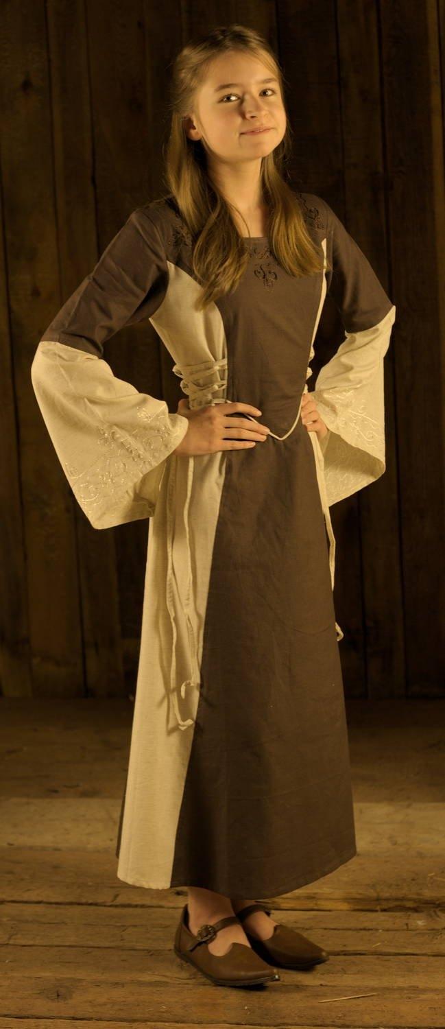 BÄRES Mittelalterkleid für Kinder Baumwolle - Farbe: natur/weinrot - Größe: 12-15 Jahre