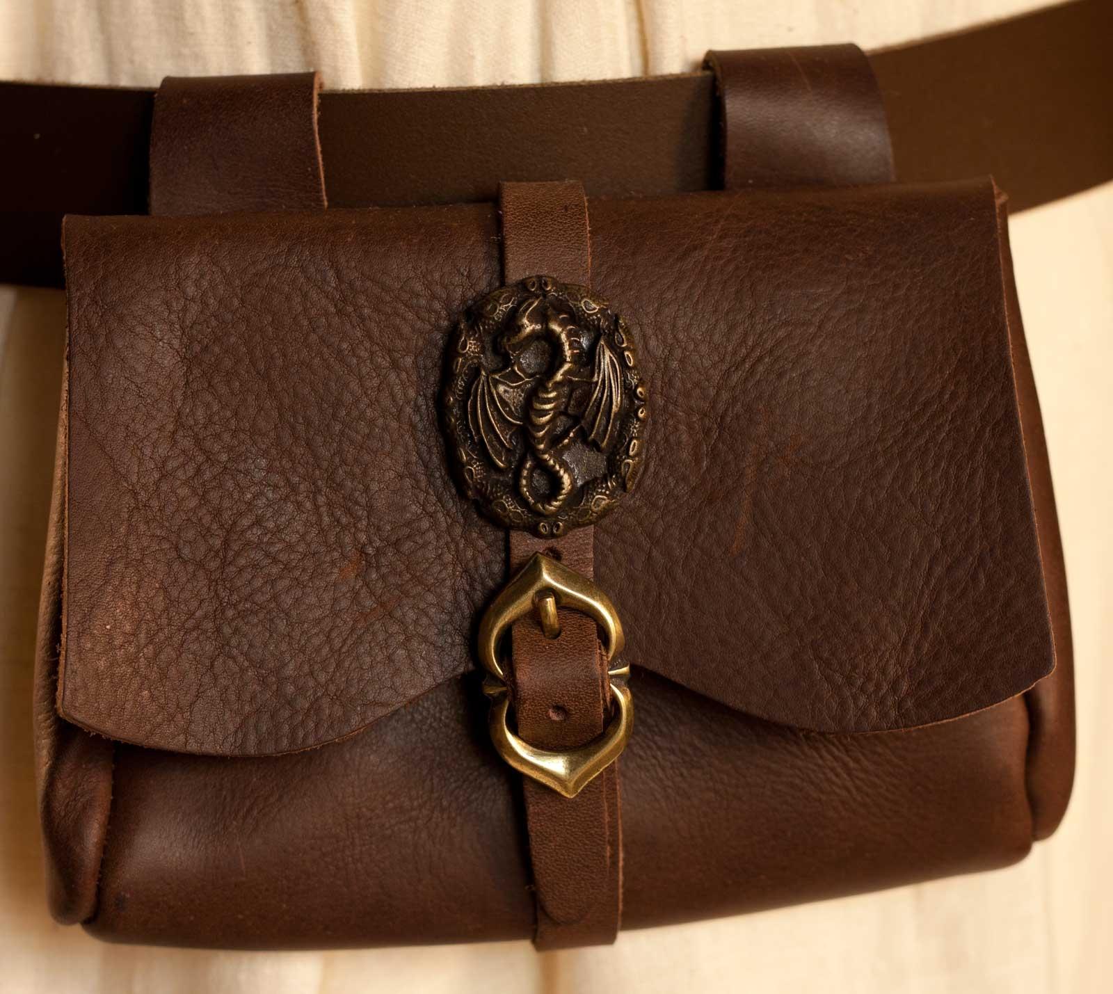 ERZFEINDCOM Braune mittelalterliche Ledertasche Drache