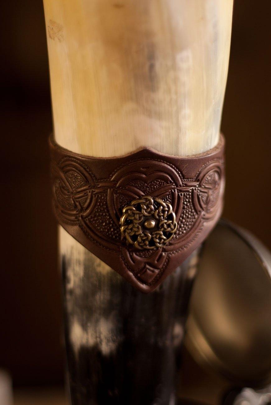 PERA PERIS Trinkhorn mit Lederhalter keltisch ca 300ml - Farbe: schwarz