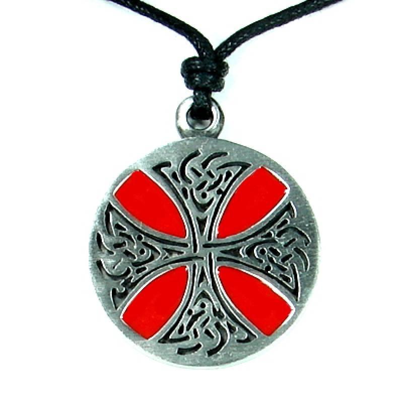 MEGALITH Zinnanhänger keltisches Kreuz / Fianna - Farbe: rot