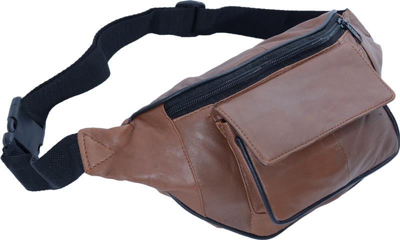 Impex Bauchtasche mit Fronttasche verschiedene Farben und Varianten - Variante: Bauchtasche mit Fronttasche Klettverschluss Nappa Leder dunkel-tan
