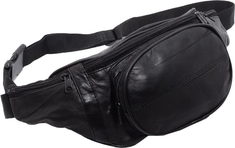 Impex Bauchtasche mit Fronttasche verschiedene Farben und Varianten - Variante: Bauchtasche mit Fronttasche Reißverschluss Nappa Leder schwarz