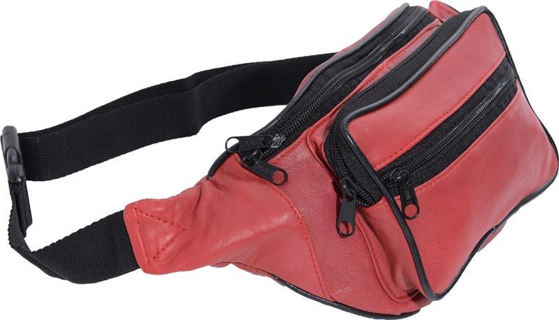 Impex Bauchtasche mit Fronttasche Reißverschluss Nappa Leder rot