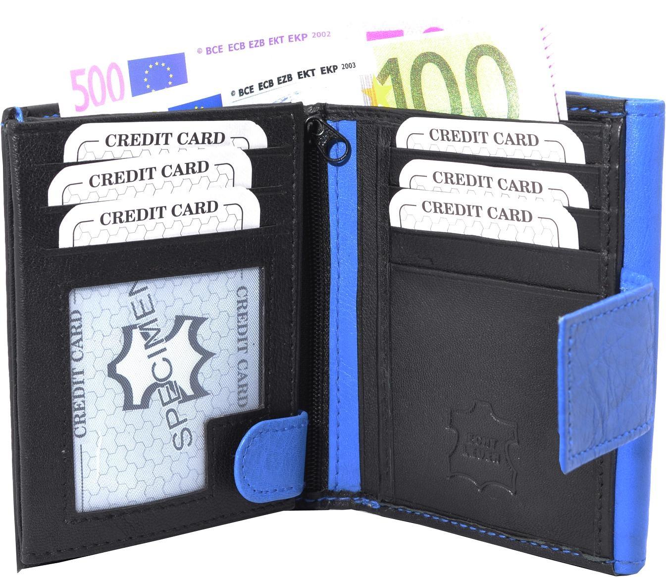 Impex Damenbörse Echt-Leder mit großem Außenriegel schwarz/blau