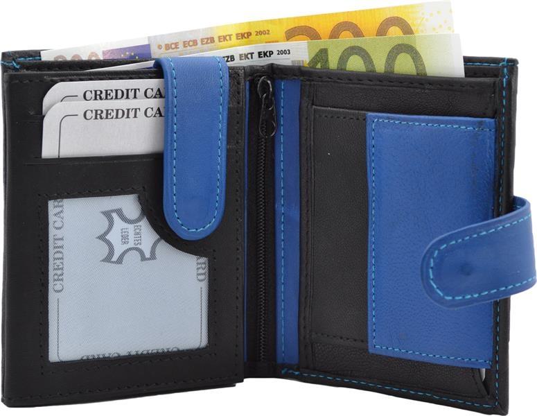 Impex Geldbörse Nappa-Leder mit Außenriegel schwarz/blau