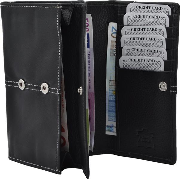 Impex Große Damenbörse mit Druckknopf Hartgeldfach Rind Leder schwarz