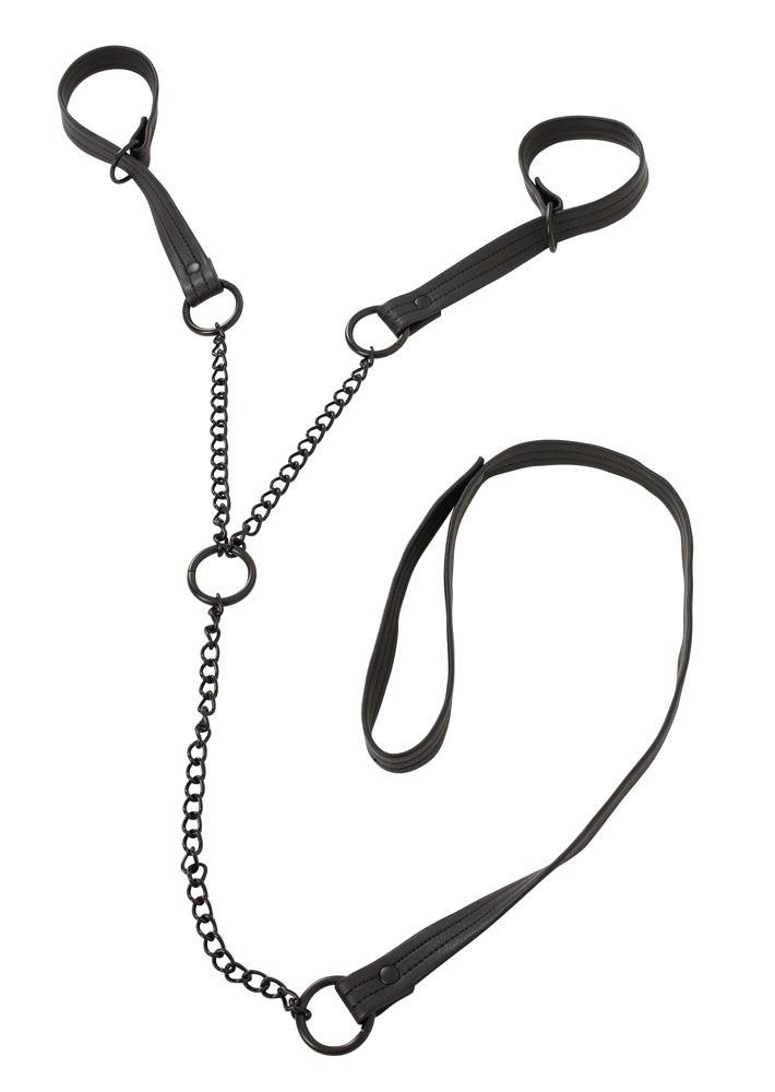 Bad Kitty Handfesseln mit Leine - Farbe: schwarz