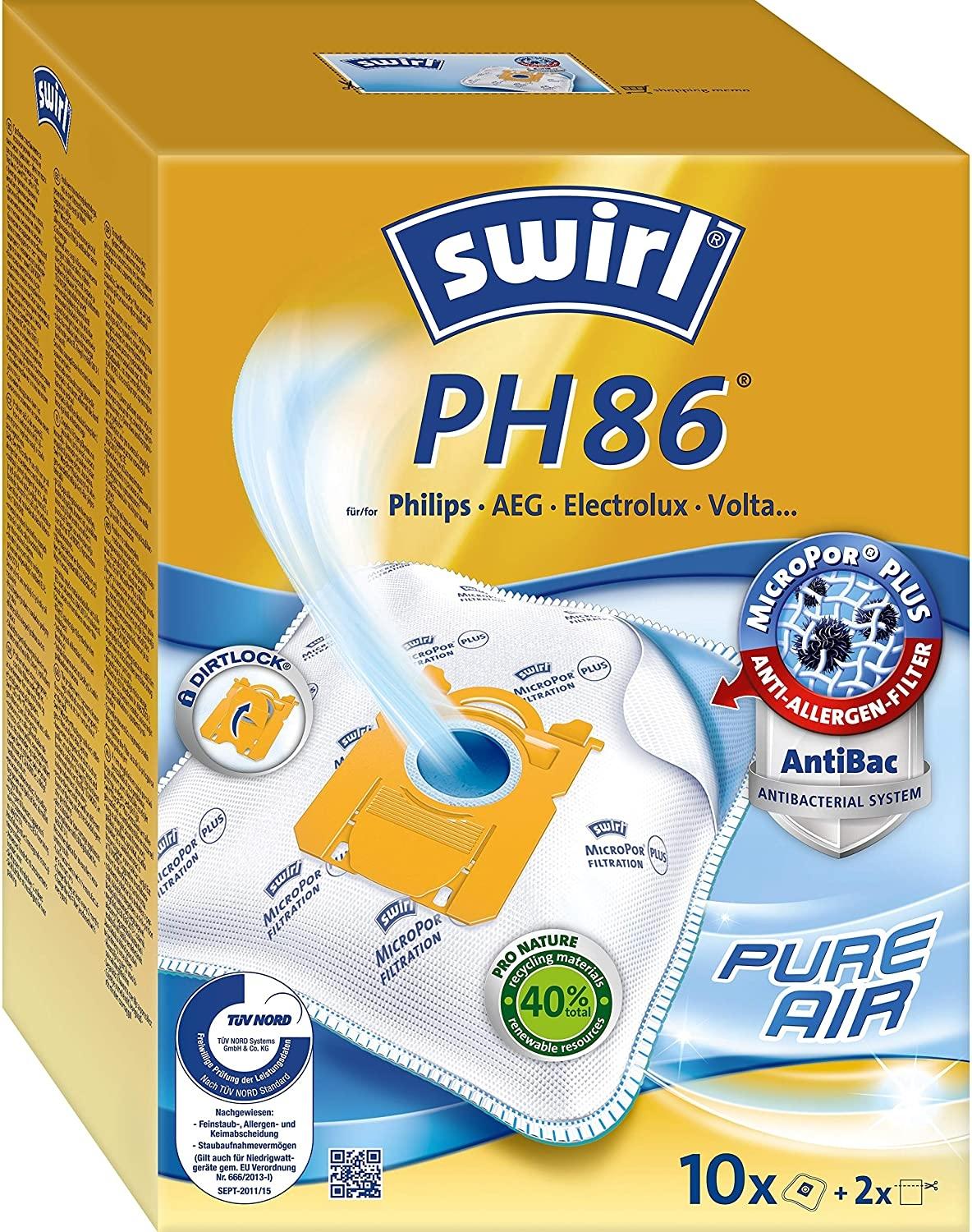 | Titel | Swirl PH 86/10 MicroPor Plus Staubsaugerbeutel für Siemens und Bosch Staubsauger | Anti-Allergen-Filter | Dauerhaft hohe Saugleistung | 10 Stück inkl. 2 Filter |